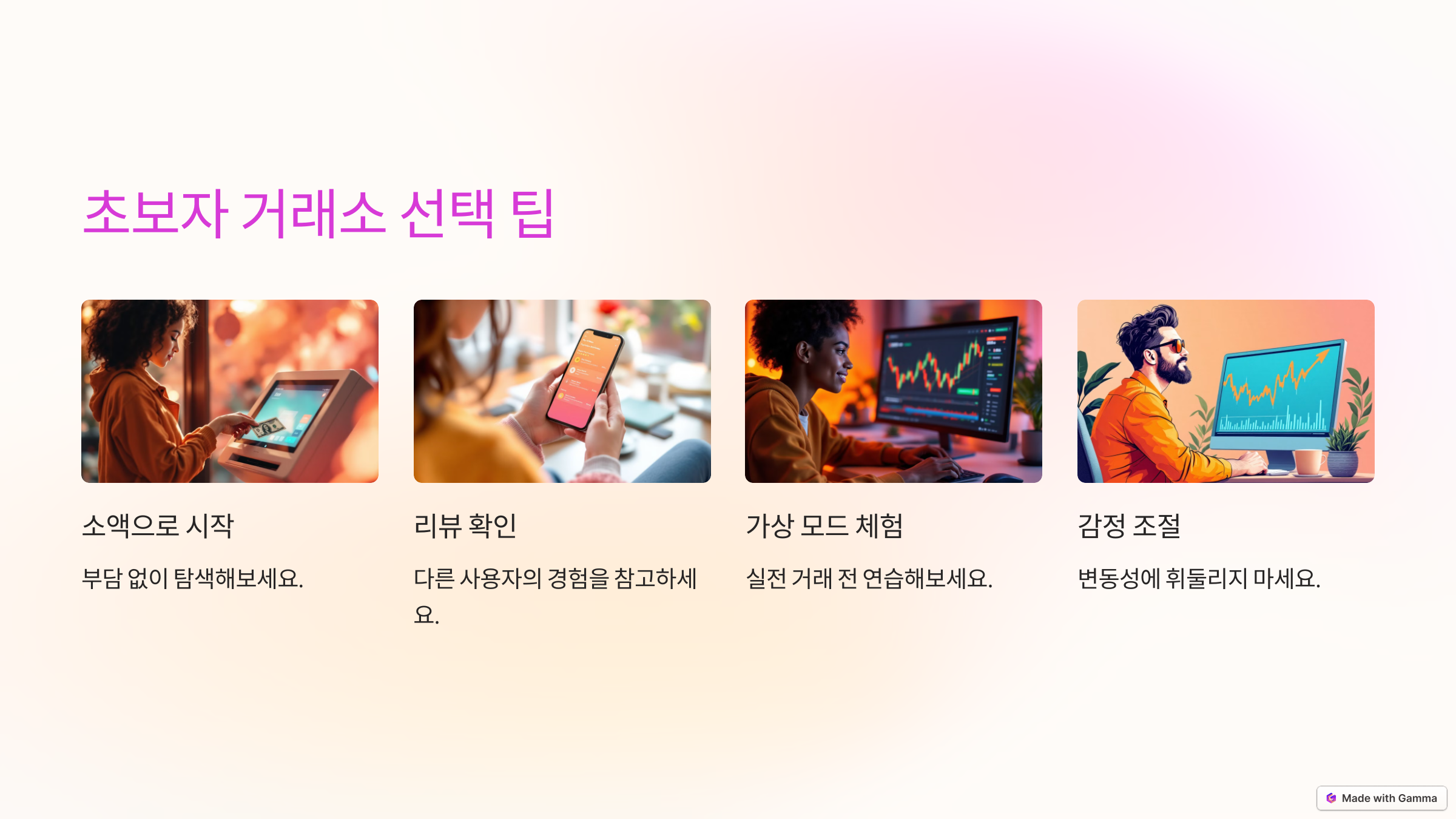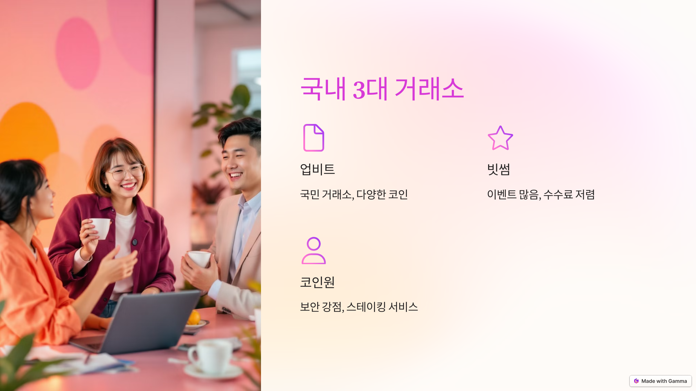 - 거래소 분위기가 다소 딱딱해서 초보자에겐 어려울 수 있어요.