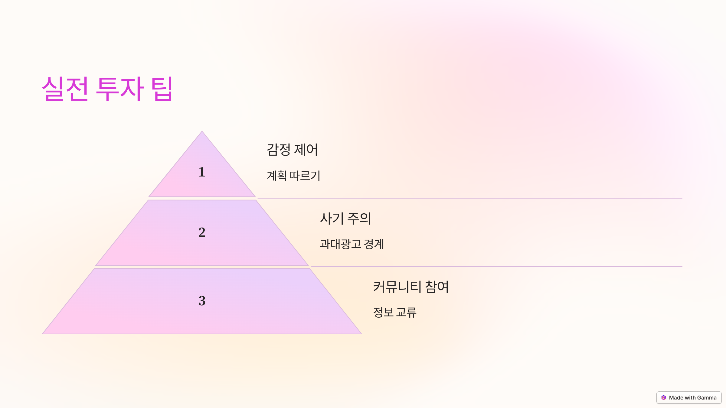 마지막으로, 초보자들이 꼭 알아야 할 실전 팁 몇 가지를 소개합니다. 이 팁들은 많은 투자자들의 경험을 바탕으로 정리된 내용입니다.