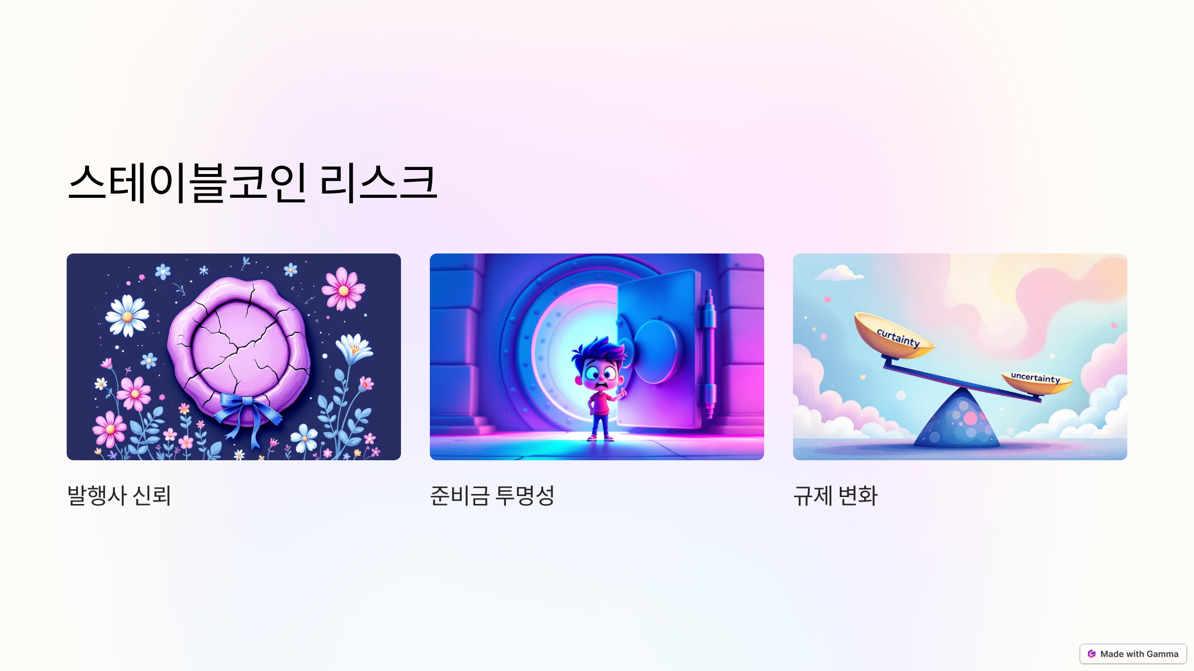 그러나 안정성을 제공한다고 해서 스테이블코인이 완벽한 해답이 되는 것은 아닙니다. 예를 들어, USDT와 같은 스테이블코인은 발행사가 보유한 준비금에 대한 신뢰가 바탕이 됩니다. 발행사가 준비금을 투명하게 관리하지 못하면, 그 신뢰는 순식간에 무너질 수 있습니다. 이는 스테이블코인 투자자가 반드시 알고 있어야 하는 리스크입니다.